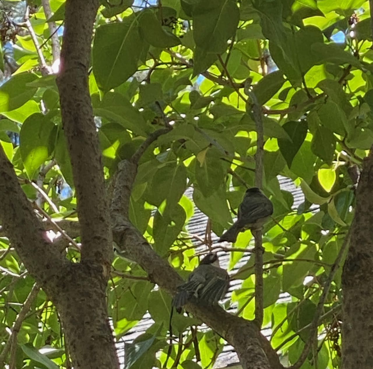 A mountain chickadee has come to perch; slender curved toes grasp the upper left corner rim of my laptop screen. My golden brown eyes meet the bird’s shiny black orbs. Here, in the shade of lilacs on an indulgent afternoon of reading and writing, the family flutters among heart-shaped leaves dappled in sunshine.
