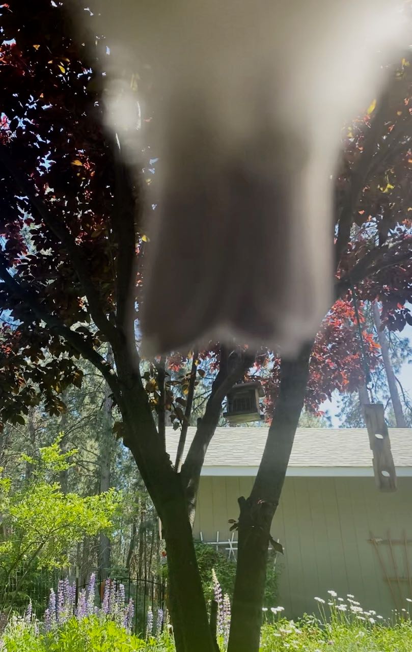Ponderosa pines rim the sunny front yard and a whole grove fills the back. Natives are best for supporting a diversity and abundance of caterpillars, and the front garden is admittedly a mix, including apple, pear, plum, and even almond, along with the lilac and cherry-plum that shade my chair.