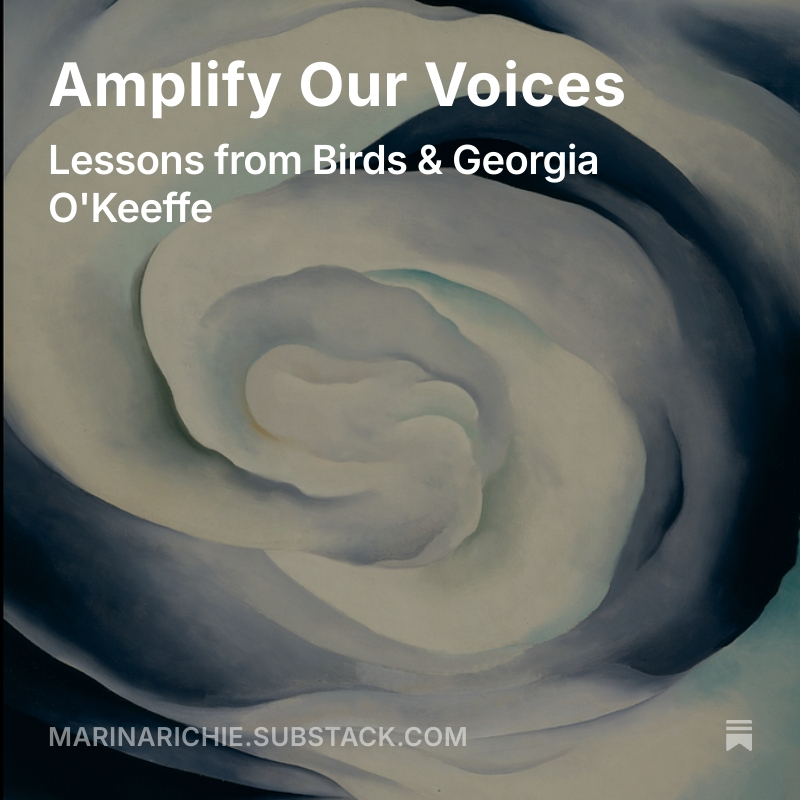 So far, I’ve only written a handful, but plan to keep them going for the reasons of my newest substack post: “Amplify our Voices, Lessons from Birds & Georgia O’Keeffe.” I begin this way, “Every voice speaking up for our Democracy matters more than ever before. How can the chirping of one American Robin multiply, grow in volume, and become so urgent that everyone stops and looks at the bird and realizes —all we love is at stake?”