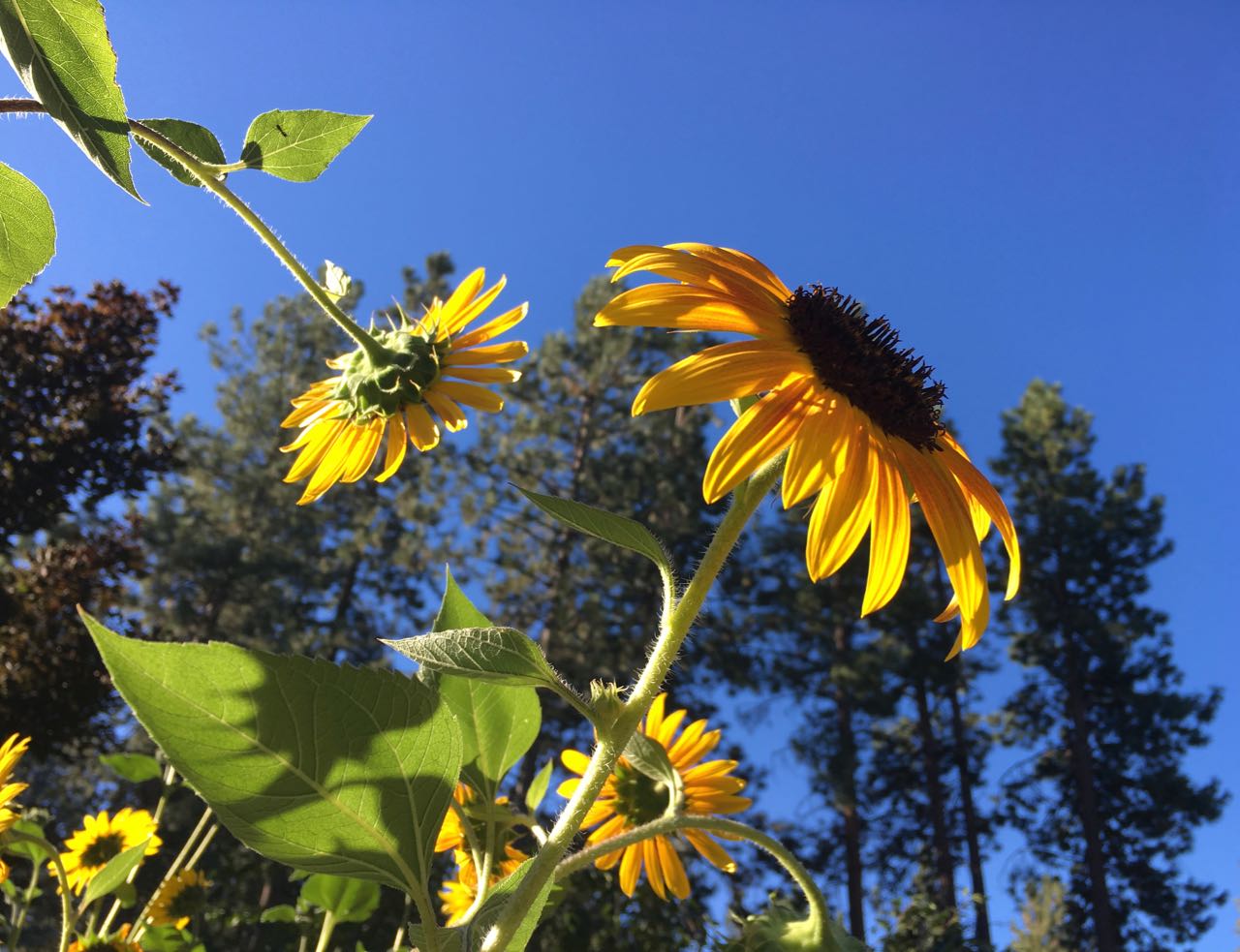 Home. Wake to the whir of rufous hummingbird wings outside our bedroom window. Rise to feed our always-hopeful-for-food labs Pepper and Summer. Flick on the pot to heat water for coffee. Gaze out the kitchen window at 10-foot high sunflowers and hollyhocks and a blissful chaos of flowers and shrubs. Brew two cups of coffee–one for Wes and one for me. Wander into the backyard to catch sunlight on manzanitas, ponderosa, and ceanothus. Stretch into this September Day. Here. Bend, Oregon.