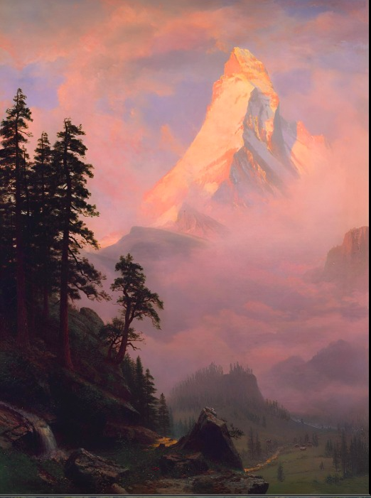 This poem is a form called “haibun”– a prose poem followed by a haiku. When I saw this lovely art of the Matterhorn by one of my favorite artists (since writing a big report about him in sixth grade at Westtown Friends School), I tumbled back into a memory. (And yes, I did love the book Heidi).