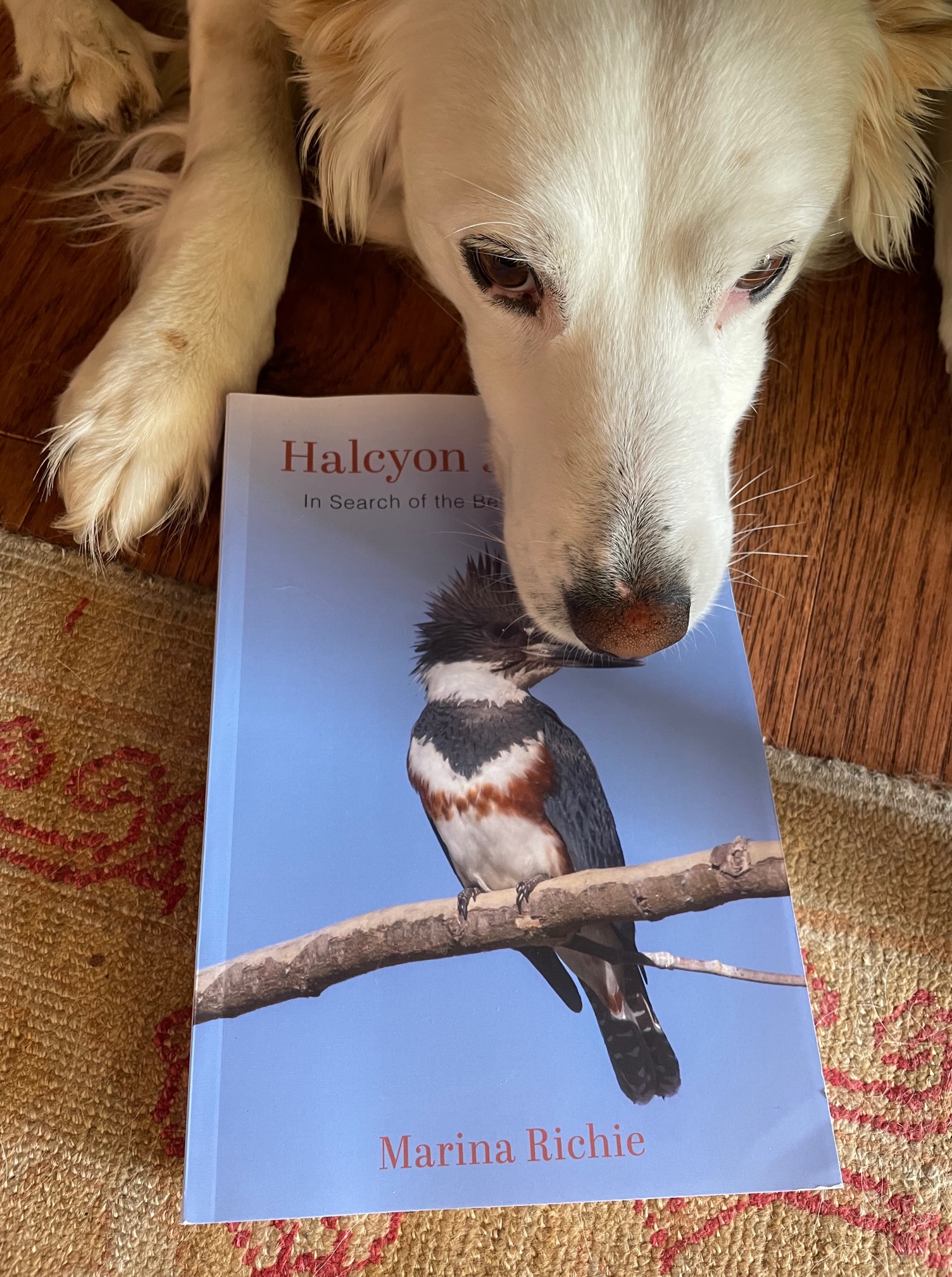 As April unfurls into May, a pair of belted kingfishers are darting in and out of a hidden riverbank hole by the Deschutes River. Listening to the familiar rattle, chatter, and wind-up calls, I wish I could speak to them in bird language and tell them the news. Right beside me is their book–Halcyon Journey: In Search of the Belted Kingfisher. I’m pleased to let them know this is the first book (and I hope not the last) to feature these jay-sized, exuberant fishing birds of North America’s waterways.