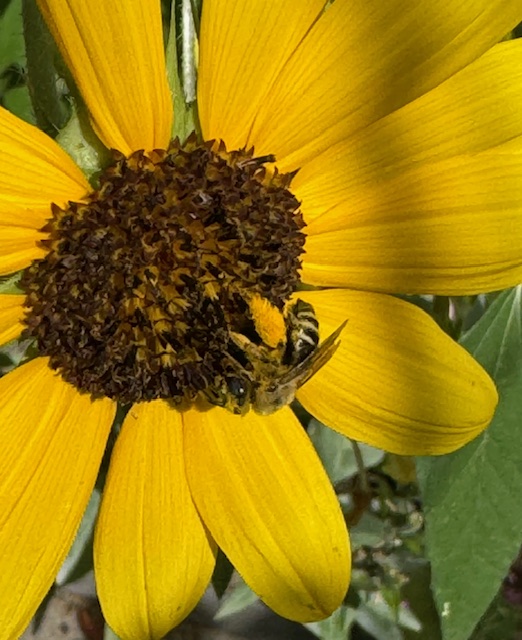 How much pollen can one bee gather? Look at those legs! (Maybe a sweat bee?)