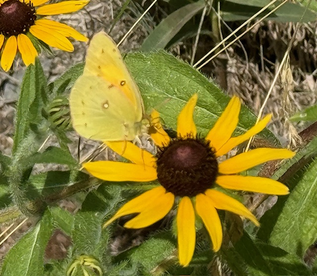 Orange Sulphur butterfly on a brown-eyed Susan–spotted yesterday while pulling weeds.