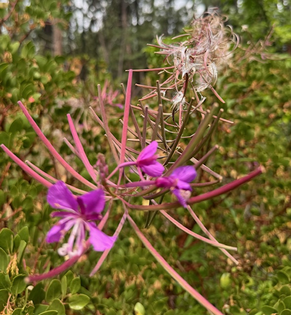 Meanwhile, our home front yard beckons with every tangle, tumble, blossom, leafing, seeding, bending, buckling, and tousled wild way of being. Yesterday on a cool clear day free of wildfire smoke, I dropped my to-do list and alternated between sitting still by the bird feeders jotting in my notebook and wandering with a slow step recording observations among our half-acre of native plants mingling with domestic varieties gone feral.