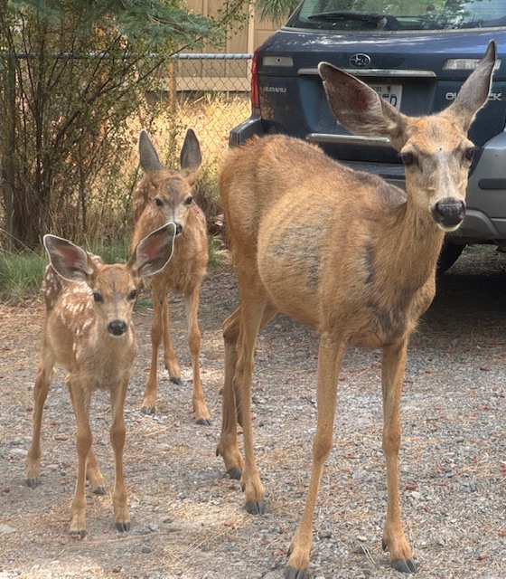 Please enjoy more photos from yesterday’s saunter, starting with the mama mule deer and her twin fawns–