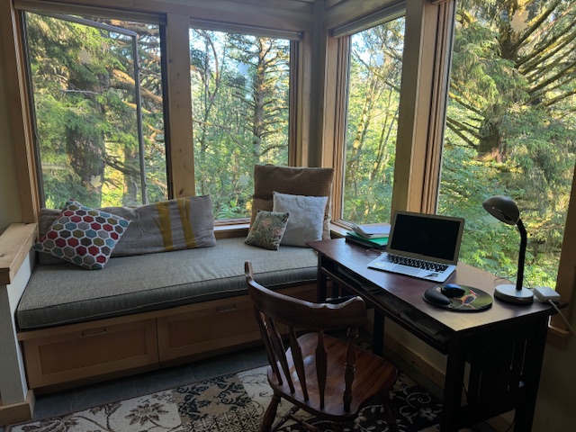 One calming discipline is my morning journal practice of penning the day, date, year, and place followed by a free write, an aphorism (some kind of ponder), and a poem attempt. I started this specific way upon taking a class from the wondrous poet Kim Stafford during the 2020 Covid summer. After teaching the practice to the six fine students in my”Bird Word” class at Sitka Center for Art and Ecology earlier this month, I decided to share some typed-up scribbles –jazzed with photos, like this one below from our front yard today.