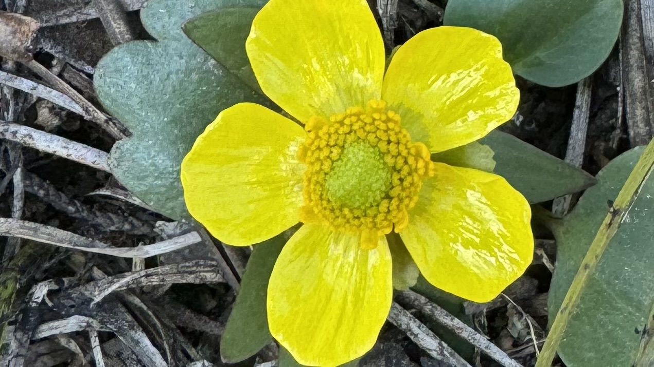 Often, we bushwhacked as we found and lost the snow-covered trail. At the lower elevations, melting snow revealed a labyrinth of raised earthen tunnels, the architecture of voles. We paused to note buttercups with buds tight as fists. By our afternoon return on a sunny day, some buds had burst wide open into five-petaled yellow blooms. That’s the way my heart felt, too.