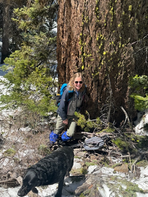 Here I am with Pepper off trail on Lookout Mountain and delighting in finding immense Douglas-fir trees. Lookout Mountain is incrediby diverse with forests shifting by aspect and elevation–offering amazing biodiversity.