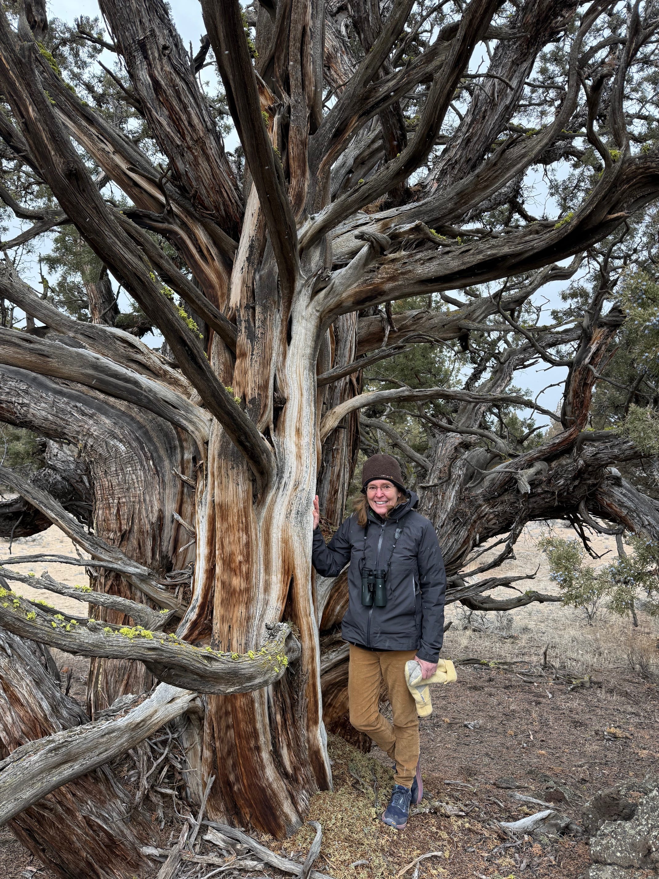 Above— Me in the presence of an ancient living western juniper of the Badlands Wilderness on February 16, 2026.