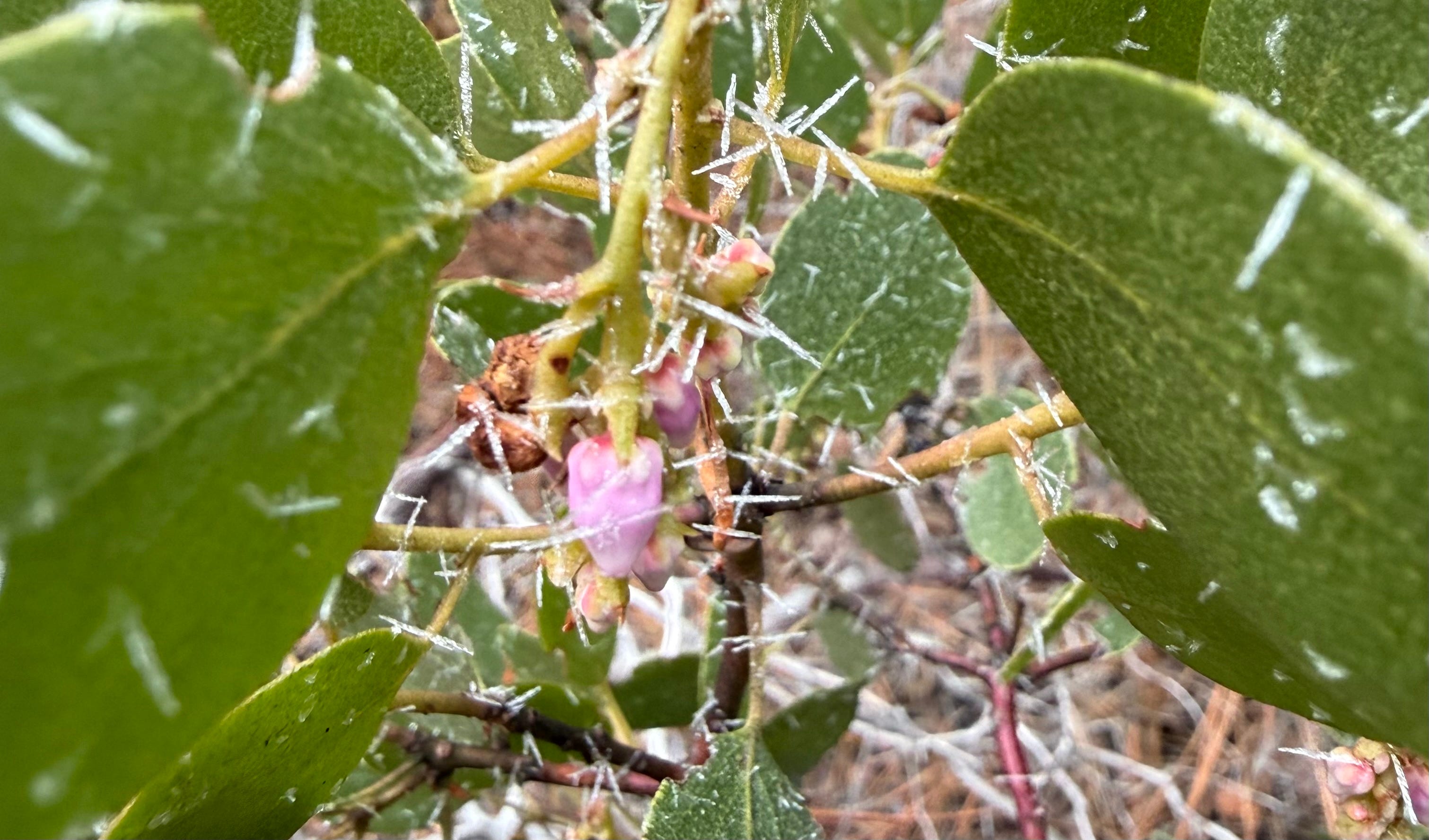 To migrate or not to migrate? Which is more dangerous? The Anna’s Hummingbird —by staying is avoiding the multitude of perils and finding more than feeders—winter insects (equipped with nature’s form of antifreeze), sweet sap flowing from trees on warmer days, and sometimes even a blooming flower taking a risk in a bout of warmer weather. But if temperatures plummet to zero, it’s a severe test for survival.