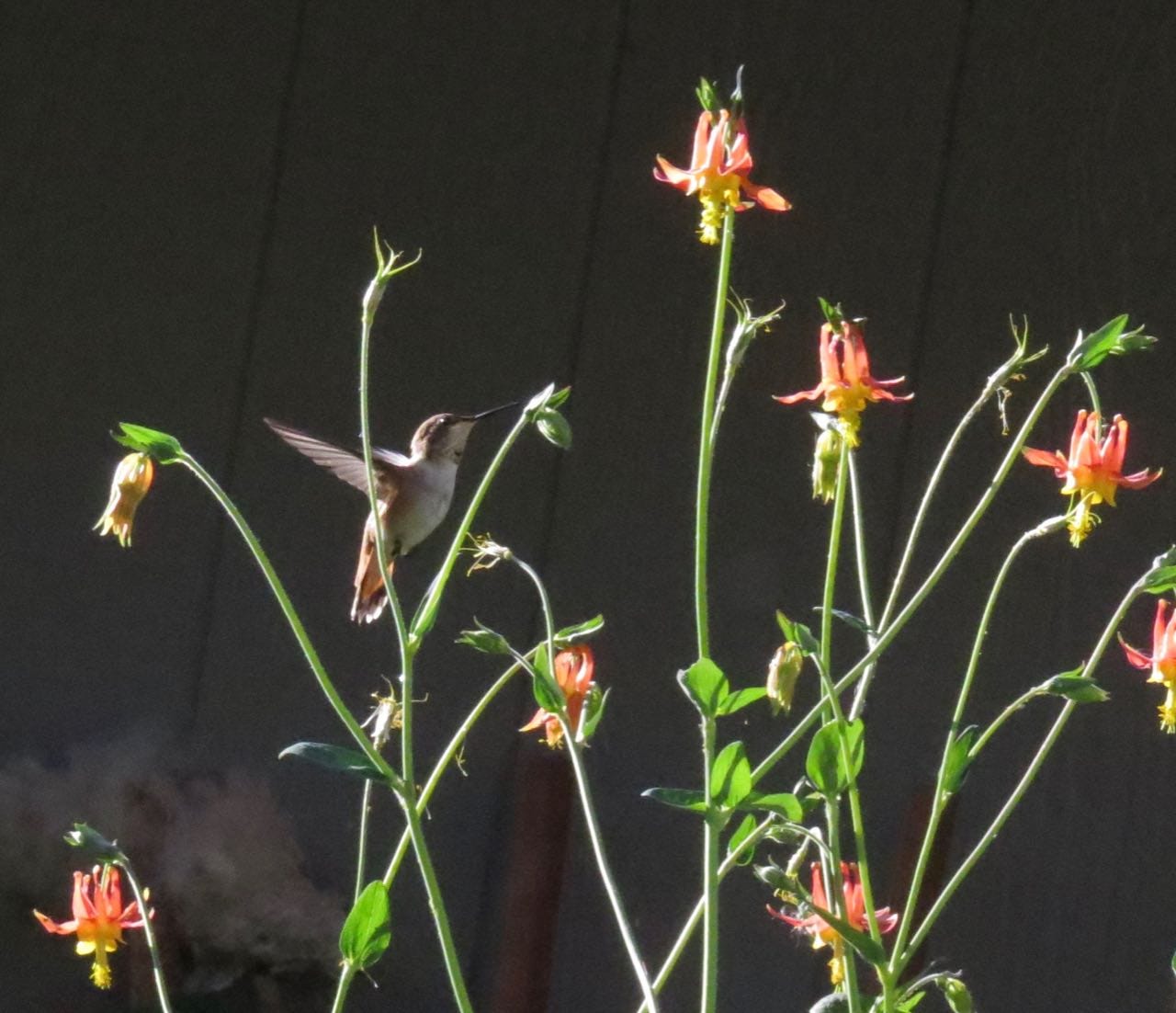 In a wash of relief, I watch him hover, then perch on a red plastic feeder with fake flowers, and dip his needle bill into the holes to sip the sugar water version of nectar I have kept warm and fresh.