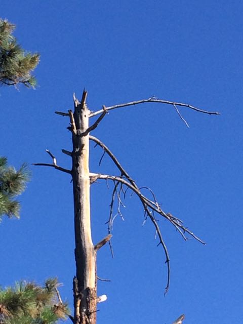 Lately, I’m snagged by this snag theme. I’m rallying to their defense after seeing the demise of ancient wildlife ponderosa pine snags (see this guest blog for Hells Canyon Preservation Council). Everywhere I walk, hike, cycle or drive I’m drawn to the life-yielding dead trees of all shapes and sizes and species. My friends are catching on, too, and sending me photos that show the great wildlife snags still standing along the roads of Crater Lake National Park (hooray for the Park Service for protecting and honoring them!):