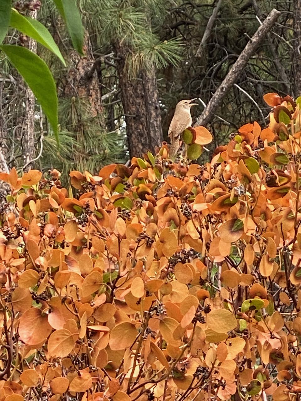 House wren sings from on top of the one manzanita in our yard that is struggling to survive for some unknown reason.