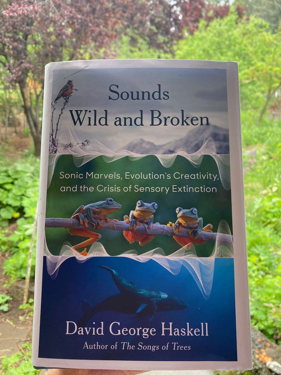 I began the day as usual with journal writing, an aphorism, and a poetry attempt. I turned then to David George Haskell’s book Sounds Wild and Broken: Sonic Marvels, Evolution’s Creativity, and the Crisis of Sensory Extinction. I tend to read all Haskell’s books in the mornings with coffee when I can be most attentive to the woven lyrical prose, science, and mind-bending connections.