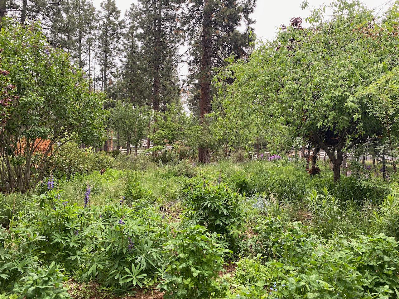 It’s time to tread barefoot into the rain–slowly to not scare away the California quail hobnobbing on the ground. Their soft cooing “Where ARE you?” notes flow around lava rocks, lupine, bunchgrass, and forget-me-nots starring the sky floor in purple.
