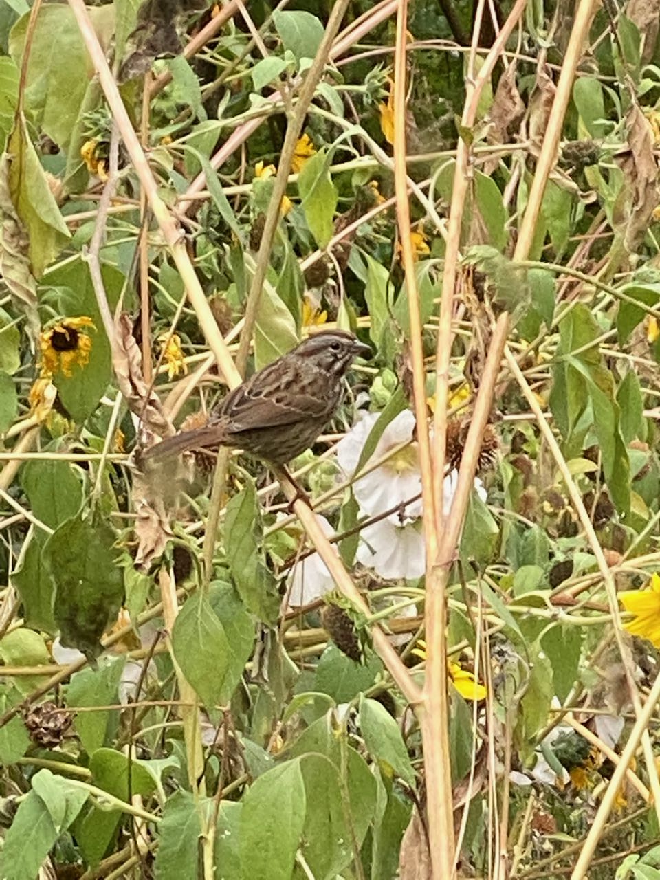 I could not go far without aggravating the swollen eyelid, so I would return to our home haven of a front yard. There, I sat in a chair, closed my eyes, and listened to the comings and goings of mountain chickadees, lesser goldfinches, pygmy nuthatches, and pine siskins. I’d startle to the squawk of a Steller’s jay or the pik pik of a hairy woodpecker, and the whirring of hummingbird wings I could not see, envisioning the flash of magenta on an Anna’s hummingbird throat and scaled wings of emerald. I could conjure the sway and lean of blooming sunflowers and the sparkle of ponderosa pine needles against a sea blue sky.