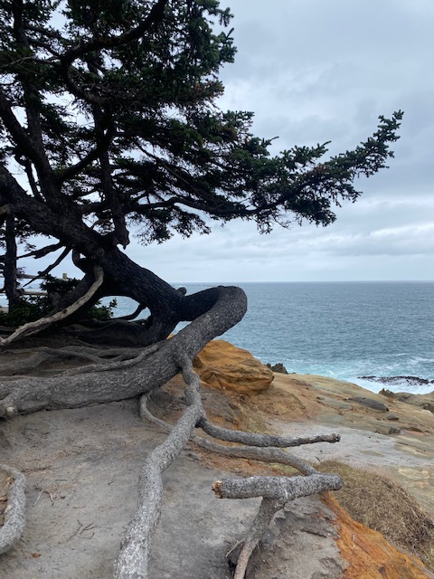 Trees too close to the edge grip with grappling roots like prehensile toes wrapping around stones and the roots of their kin. The lean can be gravity-defying. To walk the dizzying trails is to be aware of all that overhangs the ocean far below. What appears to be solid ground can be illusory—safe only as a promontory for a peregrine falcon on the hunt.