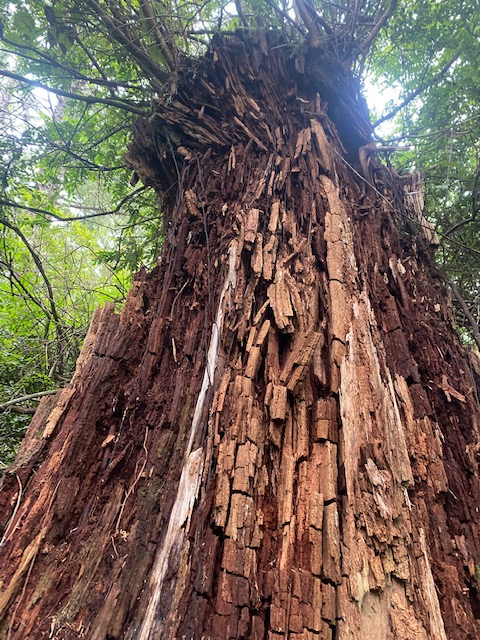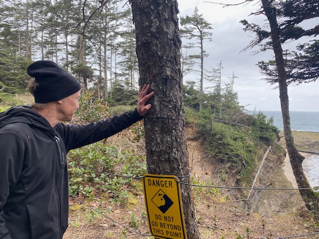 As I write in our camper on a rainy morning at Sunset Bay, I’m struggling to find the “unless” and the way of solid ground, because chainsaws are buzzing hornets in my ears and the crash of each tree’s death jars me into despair. The logging is visceral, immediate, and yet invisible from the campground–somewhere just inland on private land. But there’s no escape from the inferno, except in the intervals of quiet—when the Pacific wrens can again take up their morning soliloquies among ferns, moss, and the feathered embrace of a forgiving forest.