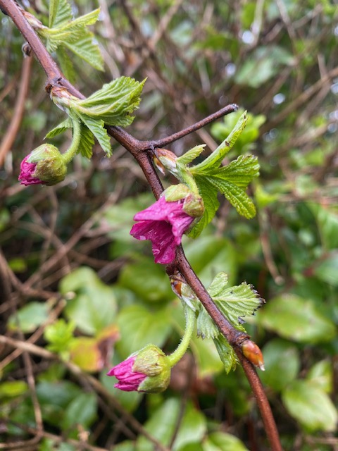 In spring’s beginnings on the lush coastal rainforest, I turn to the budding, leafing, sorbet blooms of salmonberry, yellow violets, and scintillas of song sparrow, wrentit, brown creeper, chestnut-backed chickadee, and Pacific wren.