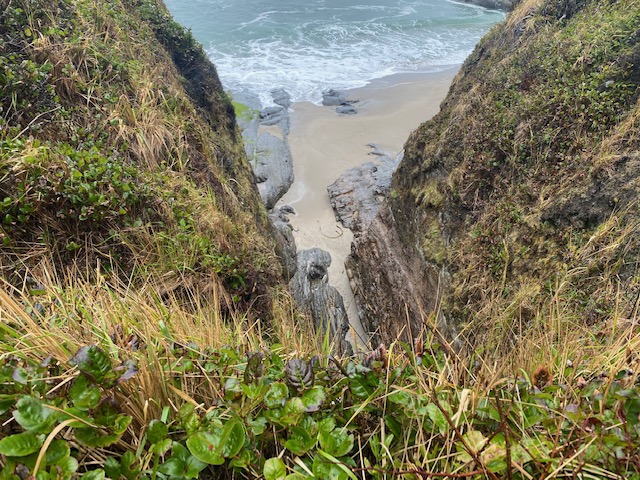 As I write in our camper on a rainy morning at Sunset Bay, I’m struggling to find the “unless” and the way of solid ground, because chainsaws are buzzing hornets in my ears and the crash of each tree’s death jars me into despair. The logging is visceral, immediate, and yet invisible from the campground–somewhere just inland on private land. But there’s no escape from the inferno, except in the intervals of quiet—when the Pacific wrens can again take up their morning soliloquies among ferns, moss, and the feathered embrace of a forgiving forest.