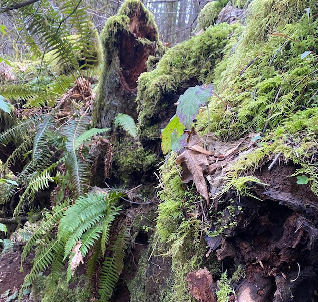 Sing Pacific wrens. Your songs are life springs, freshets, and promises of bud, blossom, and metamorphosis. Sing for the spiders lacing silk from fern to fern. Sing for sap rising, needles photosynthesizing, and carbon sequestered and stored deep in the trunks and roots of the ancient ones. Sing the insects that you pluck from moss and lichen–of beetles, caterpillars, ants, mites, ticks, millipedes, flies, and bees. Sing woven nests lined in feathers, rootlets, moss, and animal hair, and nestled into the roots of fallen trees.