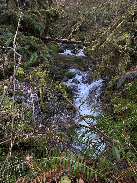 My hand reached for the nearest trunk to press lightly upon airy emerald moss. Scanning for the elusive songster somewhere close to fallen tree nourishing new life and sheltering salamanders, I heard the faint tinkling notes of golden-crowned kinglets hundreds of feet above me in the canopy. Barely visible among ferns nearby, a Douglas squirrel with liquid brown eyes dug for tasty fungi with practiced paws.
