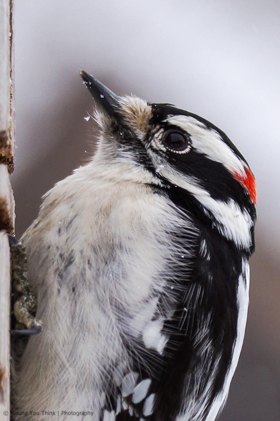 Peel off a chip of my puzzle bark. Go ahead. Peck and chisel. Find every crevice in my amber trunk. I have known you, Downy Woodpecker, a hundred times over. My age cannot be measured by the 500 rings alone. I am river song. Whitecap on lake. Trickling headwaters. Lightning strike on high ridge bursting into flame.