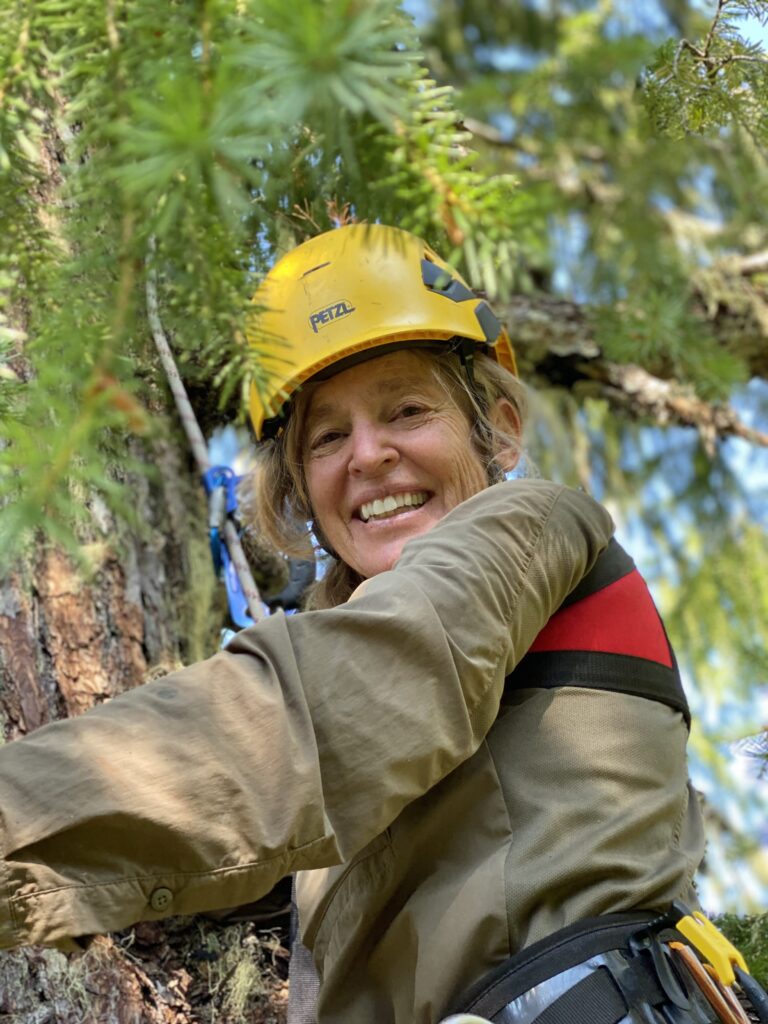 Here I am ecstastic high in a 200-foot-tall Douglas-fir in the Andrews Forest–smiling at Nina Ferrari, who was ascending behind me. Red Crossbills flew not above but below me. I felt embraced by the forest. This was August, 2022–a pivotal moment for knowing I would write this book.