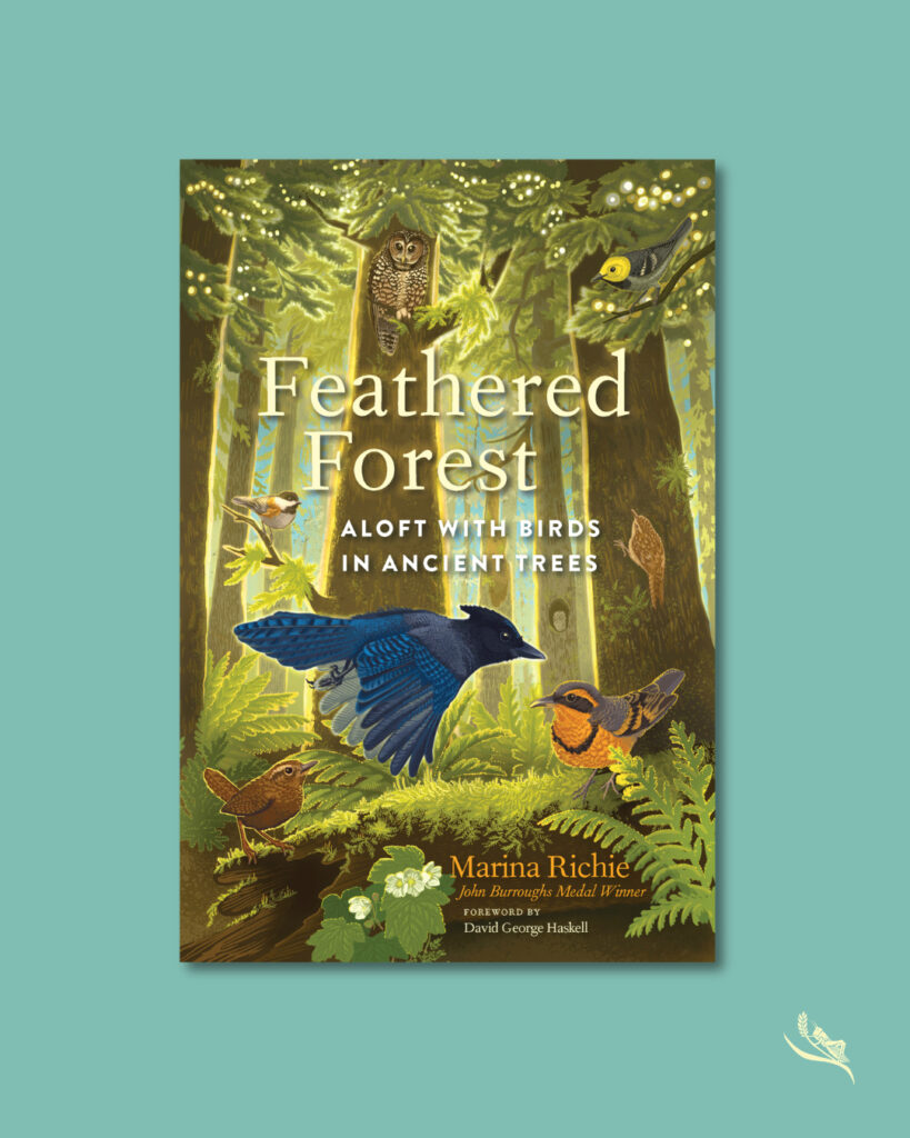 I’m grateful to my talented team at Chelsea Green Publishing and to the fabulous author David George Haskell for writing an eloquent and visionary foreword. The bird-filled cover conveys the magical way of sunlight filtering down through tall trees to illuminate ferns, moss, and flowers. Thanks to artist Dayna Walton for the cover art.