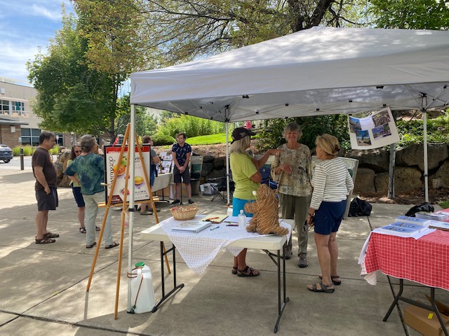 As Donna and Alice demonstrate, there’s an ideal event space already on the corner–the one I participated in Saturday as one of three local authors, along with a fine artist Jeanne Debons, and Think Wild, a wildlife hospital and conservation center for Central Oregon. Green lawns also take a lot of watering and are ecological dead zones. As climate change worsens drought, touting more green lawns over the existing xeric native plants is irresponsible at best.