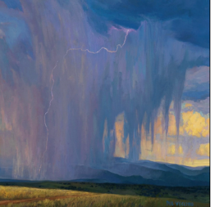 For decades, I’ve loved the music of Emmylou Harris and her velvet, soulful, and powerful voice–my can she croon when she sings “Red Dirt Girl.” It’s a very sad song when you pay attention to the lyrics. My grandmother on my mother’s side was Lillian Campbell. In contrast, she had a good life and a kind, funny, and supportive husband Robert Campbell. Her tragedy was in his death in his early sixties. I was just three. She was valiant in going forward without him. She adored England and even went there by herself on the Queen Mary ship. The following is my ekphrastic poem about the Lillian in Emmylou’s song and all the Lillians like her. I felt like I needed to send the Lillian in my poem home to the grace of meadowlark song. Notice the play of light in the storm in the art piece.