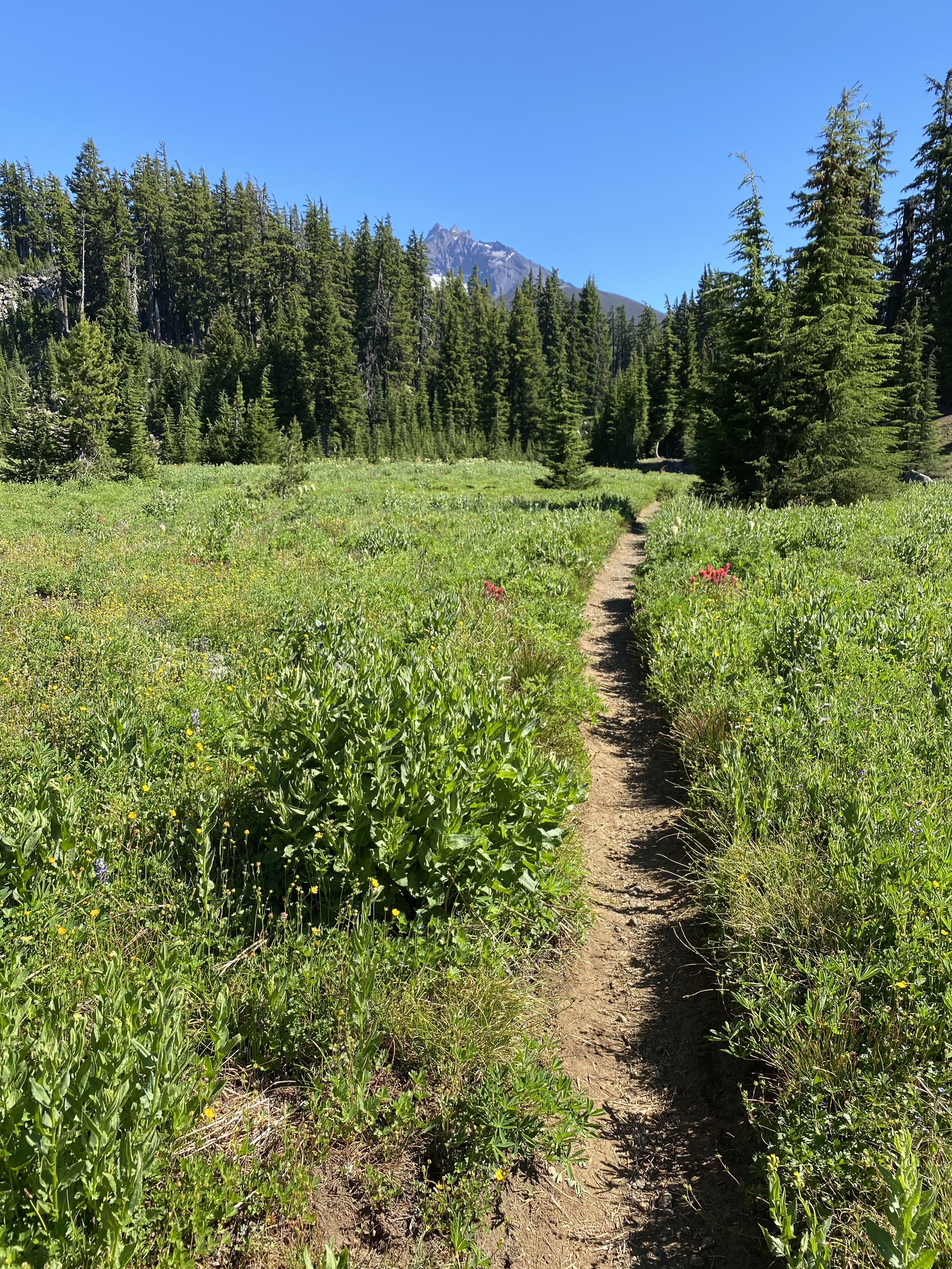 On an overnight backpack in the Three Sisters Wilderness, I am musing over trios, triplets, and tryptychs. I’ve come as part of a trio–Rob, Wes, and me. Rob is my younger brother. I grew up the middle child of three. Wilderness has three syllables. So does renewal.