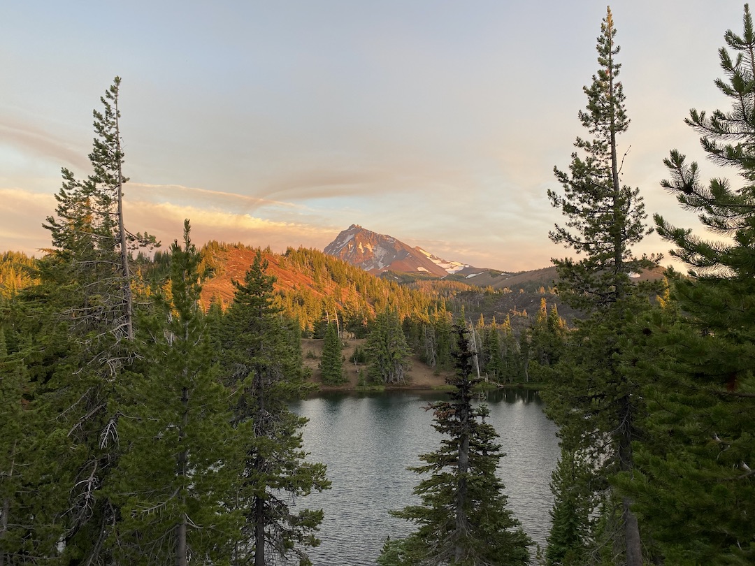 As sunrise paints North Sister in pastels, I write in my journal above a subalpine lake. (Trio of North Sister, Journal, and Lake):