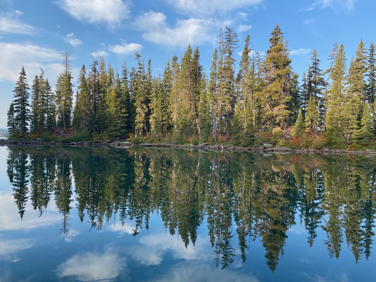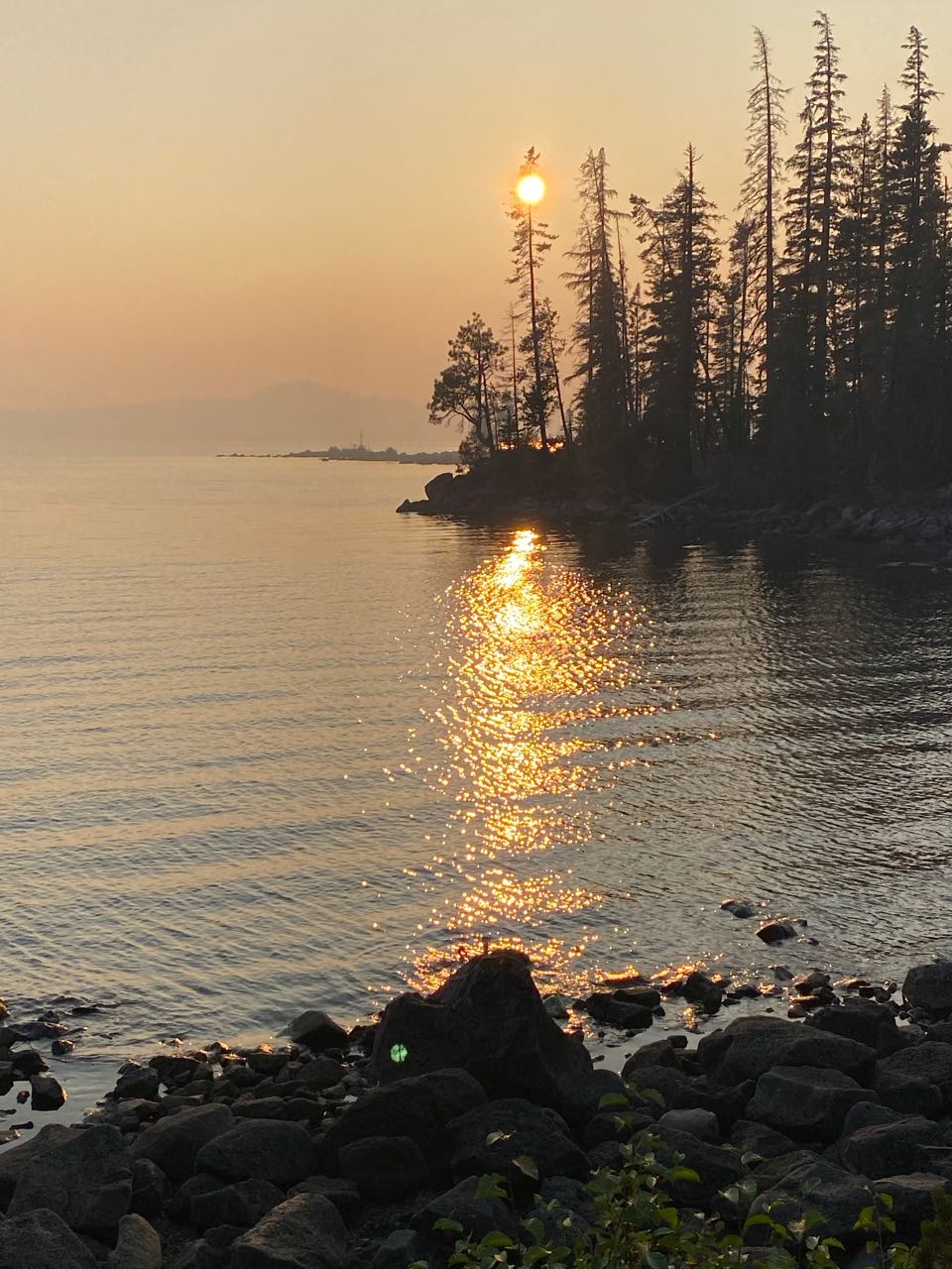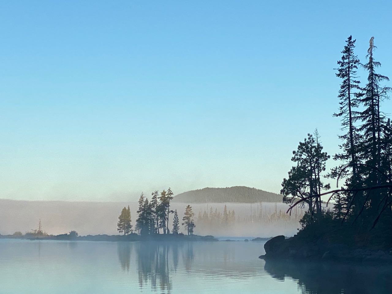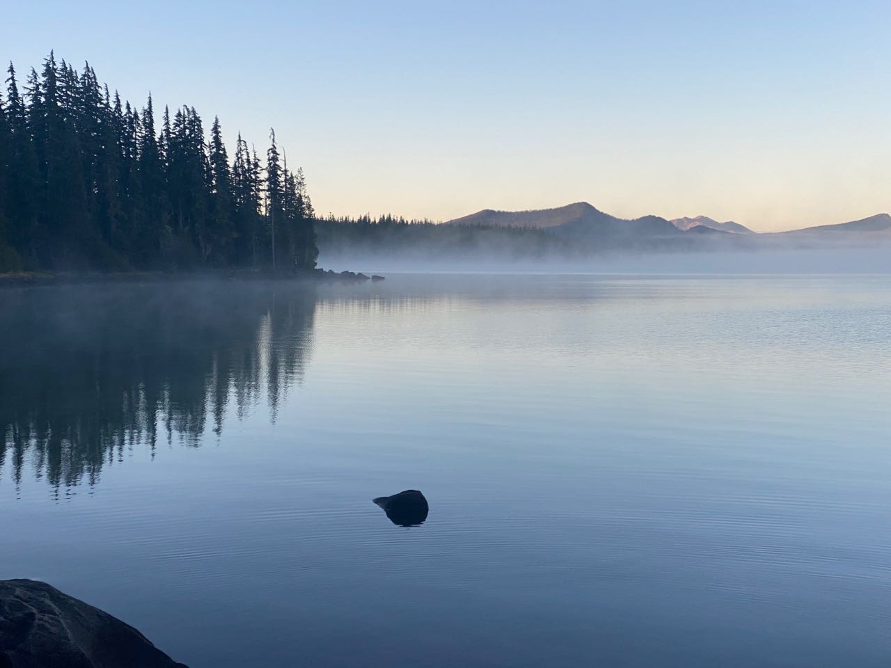 Blinking in the first sun rays, I envision Waldo Lake as an immense clear blue eye with depths reaching 420 feet and visibility more than 100 feet down–enough to give you vertigo. To trace the circumference takes following a 21-mile trail. The surrounding intact forests are like eyelids with lashes—keeping the fragile lake safe from danger.