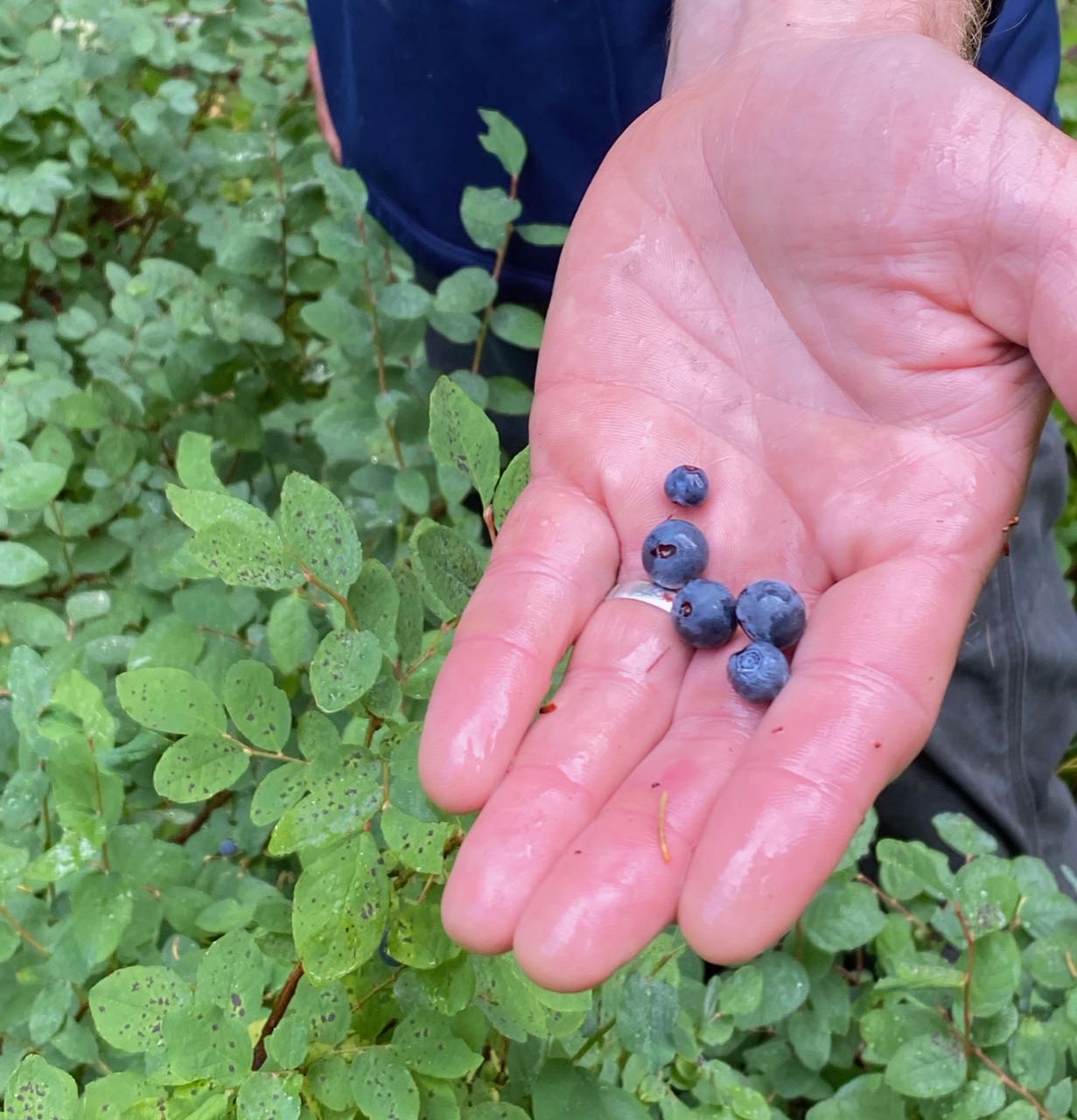 Returning to our day that began in mist…We could have stayed on the established trails leading to lakes, peaks, and even sauntered along the Pacific Crest Trail, but I credit Dave Stowe with providing memorable experiences off trail. Within the first 15 minutes of our morning hike, we sloshed through verdant boggy meadows. Only by soaking our shoes and socks were we rewarded with bushes overflowing in sweet and tangy huckleberries, blueberries, and gooseberries.