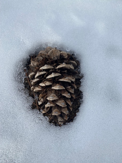 Mary Oliver’s poem “When I am Among the Trees” calls to me on this first quiet day of February. I am back at my desk after a slow walk in the pocket pine forest behind our home. It’s such a small forest really, curving up against the 7700-year-old massive lava flows between here and the Deschutes River. Each wander differs from the other by season, time, and weather. On this mid-morning, a few inches of cold sugary snow are tracked in the prints of western gray squirrels, Douglas squirrels, coyote, mule deer, and our nose-to-the-ground labrador Pepper. The gray sky lifts an eyebrow, then shuts tight.