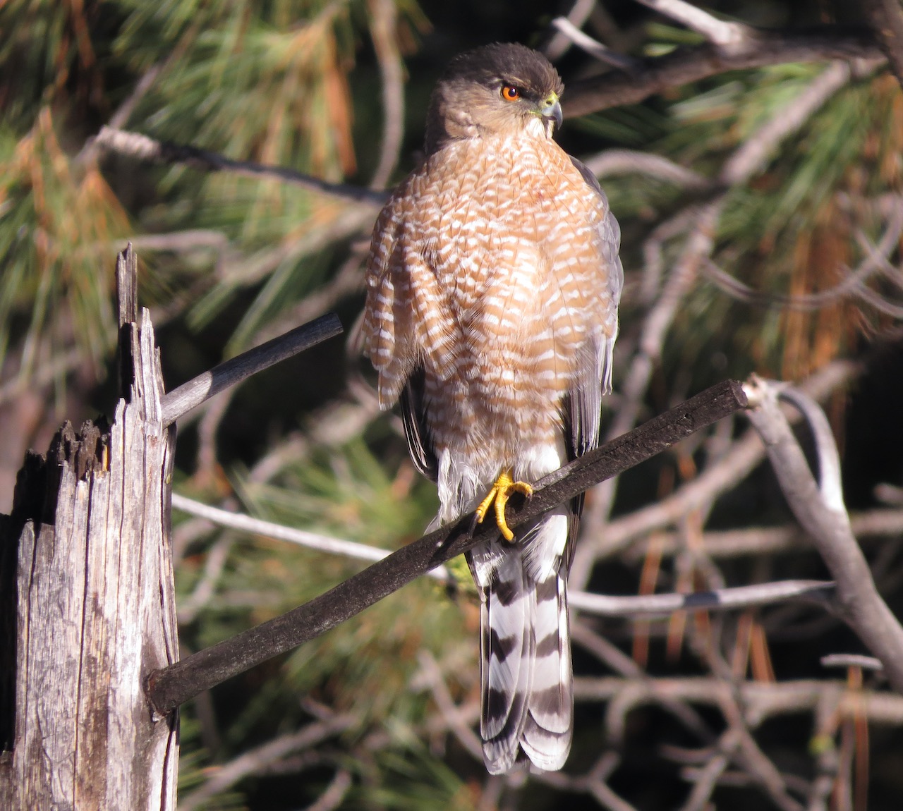 Besides, it’s not easy being an accipiter, the name for forest hawks with rounded wings for slaloming through trees and long tails for steering. So often, I’ve witnessed a Cooper’s Hawk or Sharp-Shinned Hawk flying off empty-taloned. Add in a century of horrendous shooting of hawks and eagles before 1972 when finally protected under the Migratory Bird Treaty Act, and we have much to do to make amends.