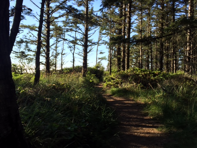 Never rush this trail. Each “dead end” is a living opening of sky, seabird, and breaking wave upon the tilted cliff. At Arago’s tip looking out into the sun dazzle on whitecaps with the breeze rippling over salty skin, we see the spouts of gray whales and the arcing body of a leviathan that reminds us that the ocean as a watery medium has no edges, no defined trails or dead ends.