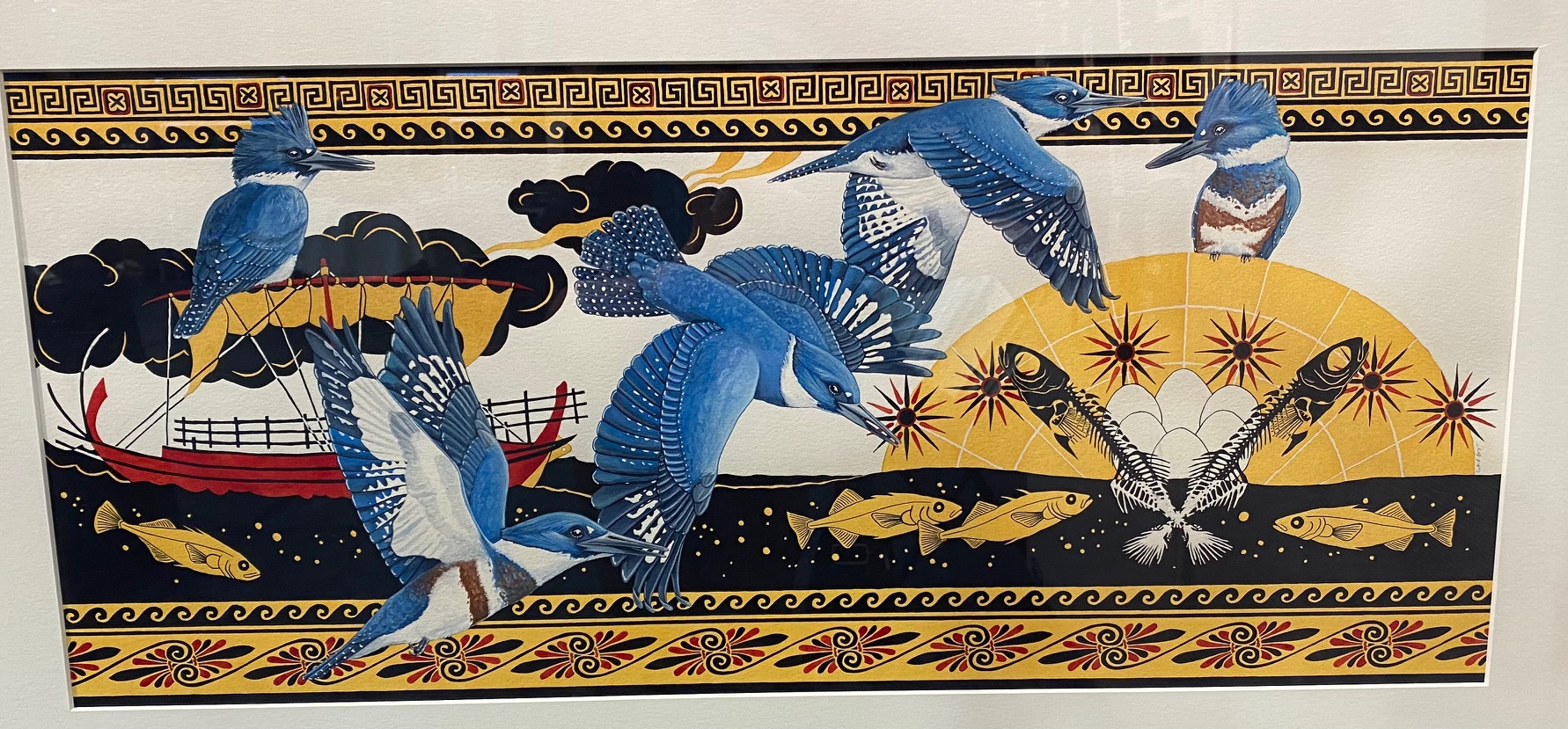 This is the time of mythic kingfishers. In the ancient Greek myth, the gods Zeus and Hera turned lovers Halcyon and Ceyx into kingfishers destined to nest annually upon the sea over the winter solstice (December 21st in 2022). Aeolus, god of winds and father of Halcyon, calms the stormy waves for fourteen days, seven on either side of the solstice. Peace. Tranquility. Happiness. Transformation. The moon is a waning crescent. The Halcyon Days are now.
